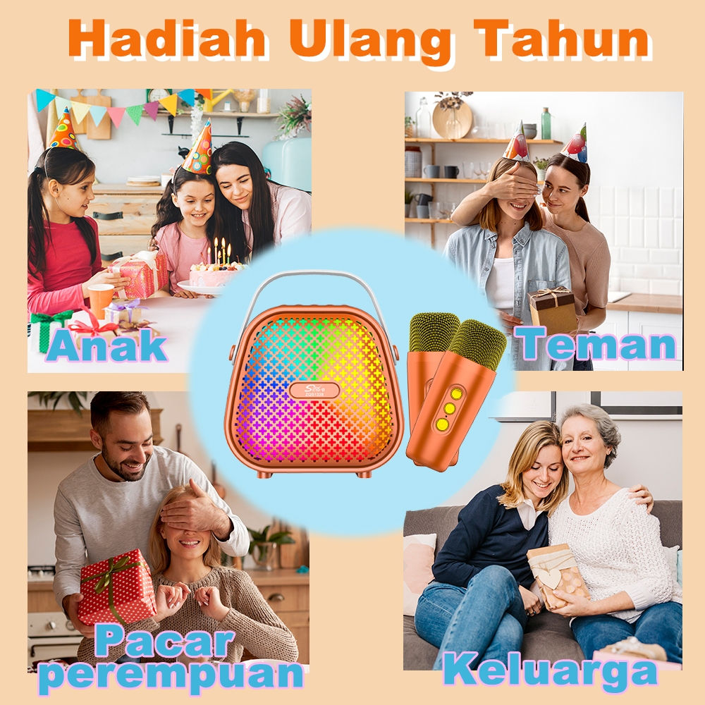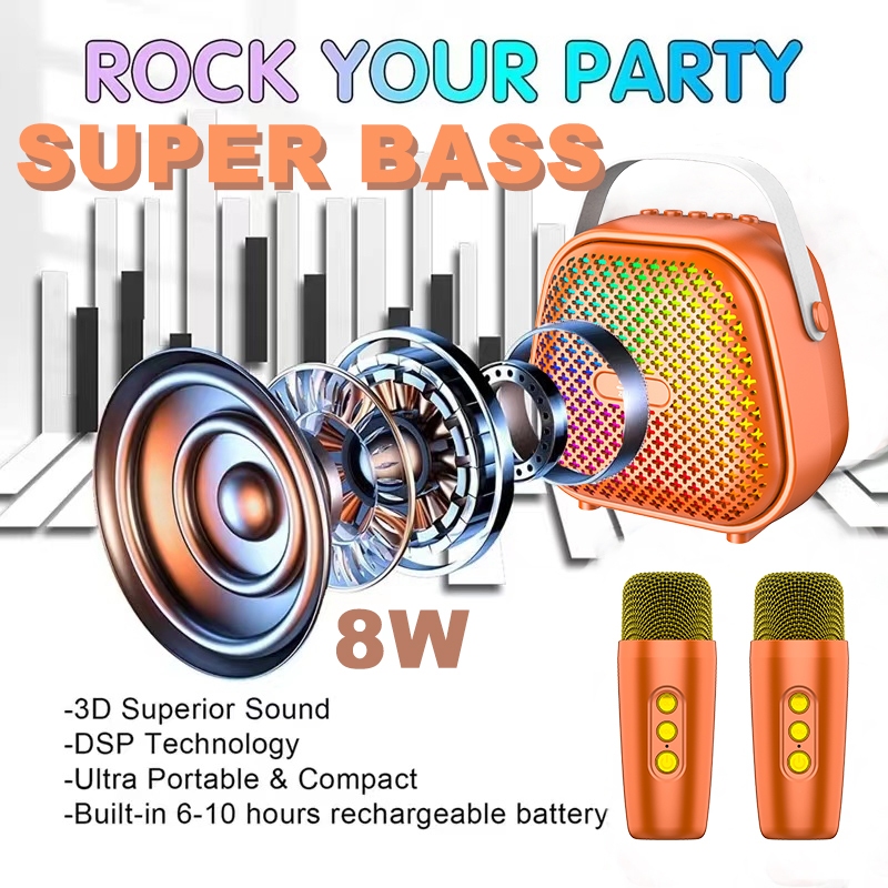 MAIKET Speaker Bluetooth Karaoke Super Bass 2 mic Portable Mini Advance MP3 Player Music Box Cute Anak-Anak Hadiah 100%