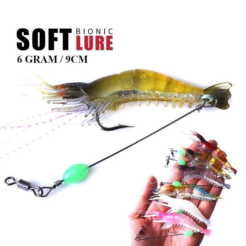 Umpan Udang Bisa Menyala Bahan Karet 6gram 9CM Soft Rubber Plastic Shrimp Fishing Lures Luminous Noctilucent Night Baits Pesca Leurre Shrimp Tackles