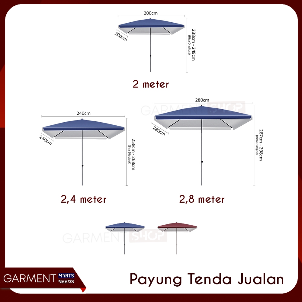 Payung Jualan Kotak Persegi Jumbo Tiang Kokoh Tenda Dagangan PKL Anti UV Besi Hitam Anti Karat