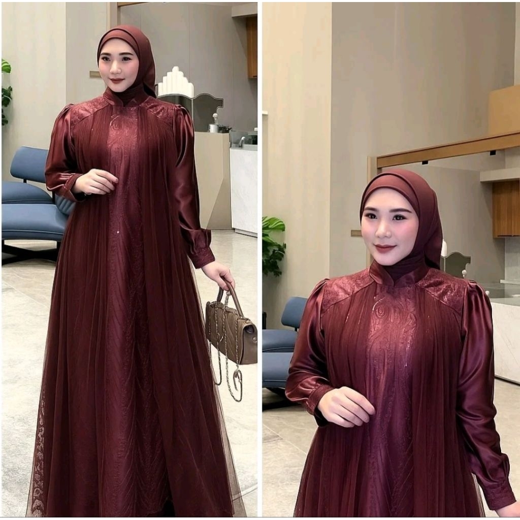 LEYA DRESS GAMIS BRUKAT IMPORT PREMIUM BAHAN SILK MIX BRUKAT TILLE GAMIS PESTA TERBARU LEBARAN 2026