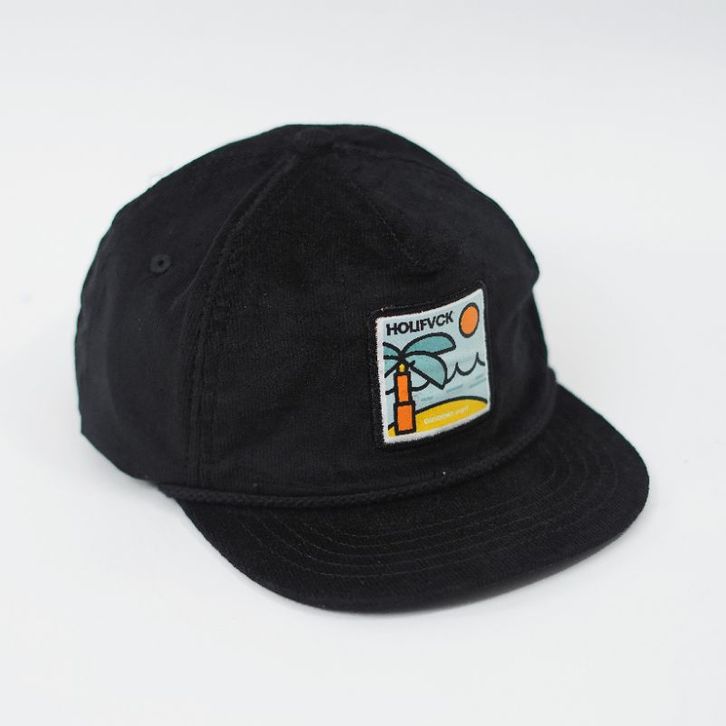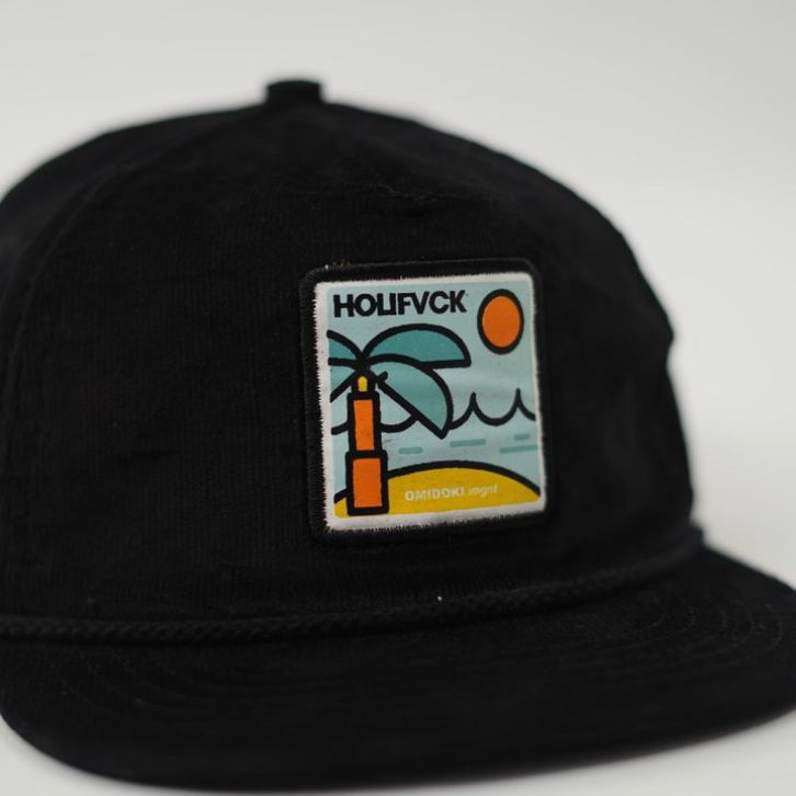 Topi Corduroy Visor Pendek Hitam Rope Hat Patch Omidoki