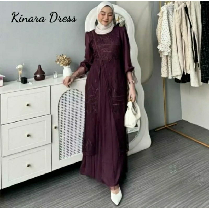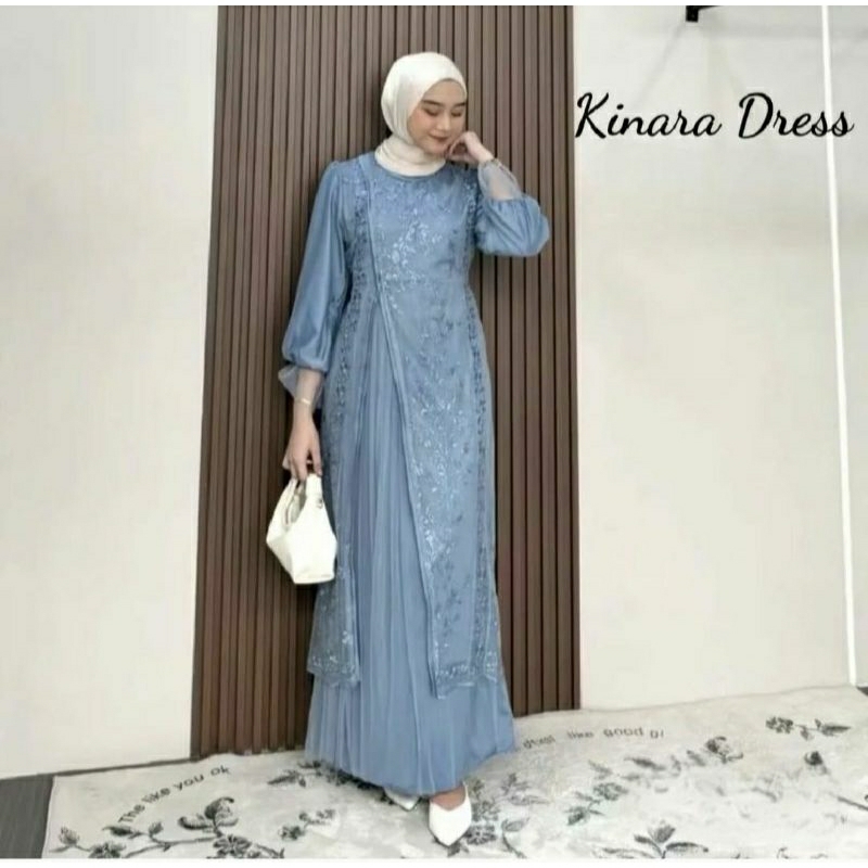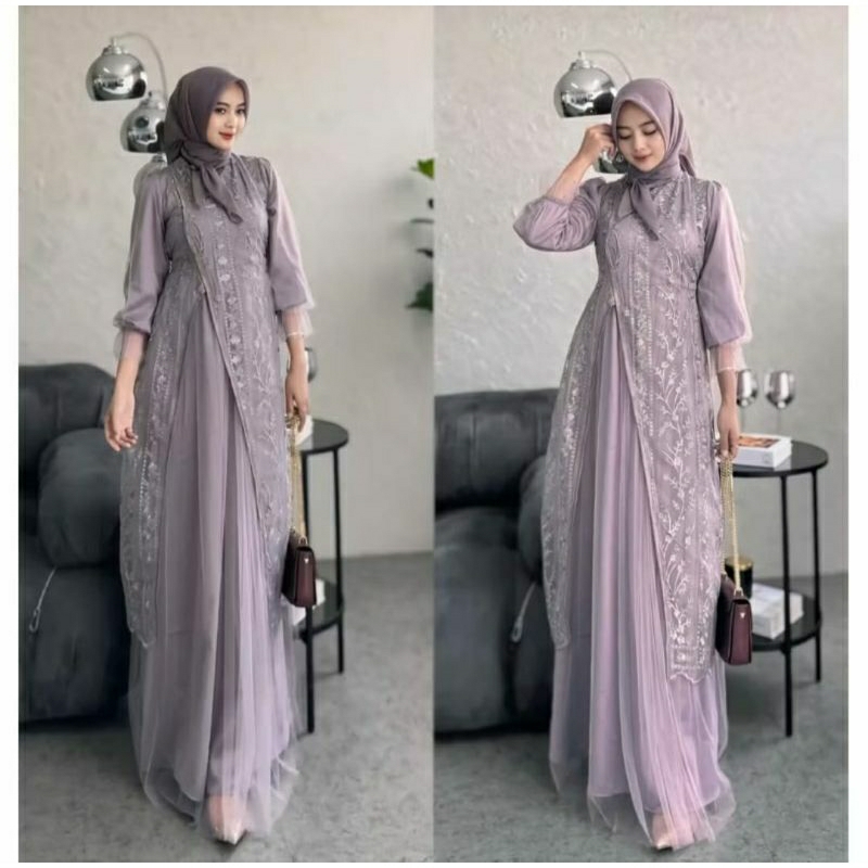 KINAR DRESS SILK BAHAN VELVET MIX BRUKAT TILLE PREMIUM GAMIS WANITA TERBARU 2026 GAMIS KONDANGAN