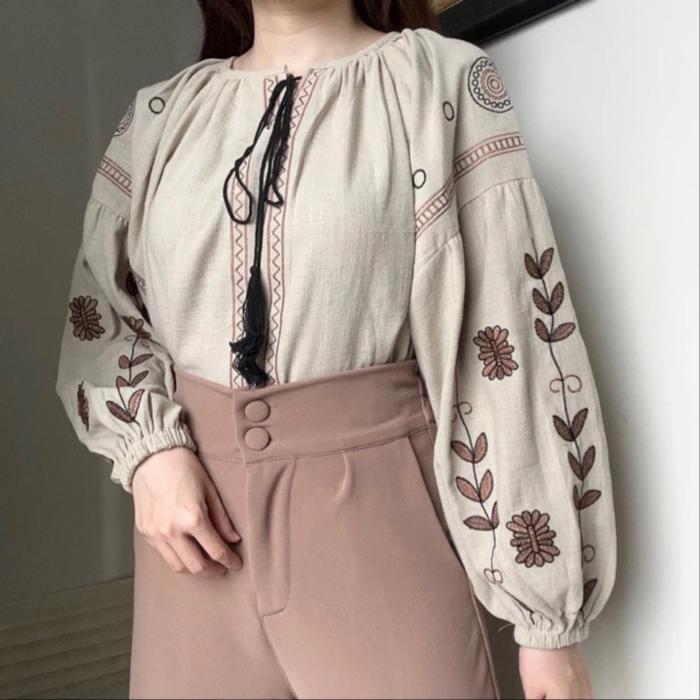 FEREYA ATASAN BLOUSE WANITA KOREAN STYLE BY BIEL THE LABEL - KREM MOTIF JALAR
