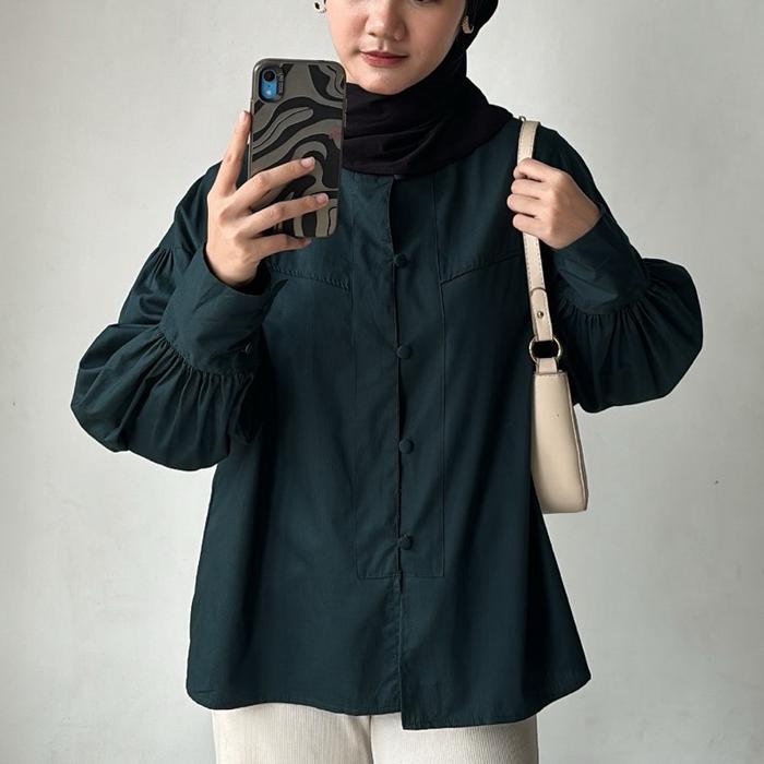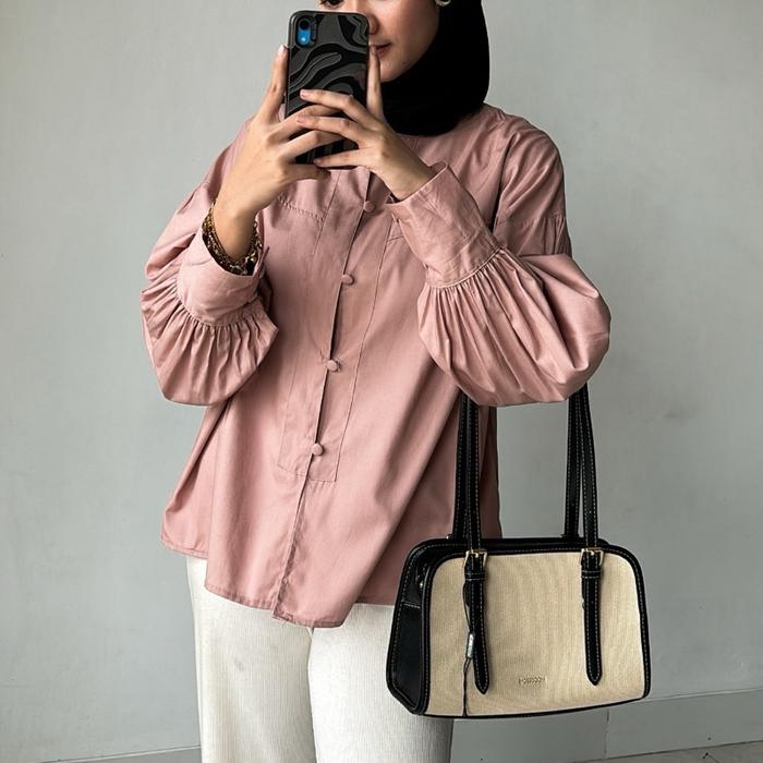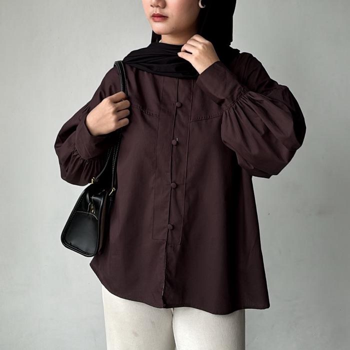 LAUREN BLOUSE MOTIF POLOS - MAROON (734), OVERSIZE