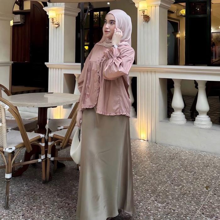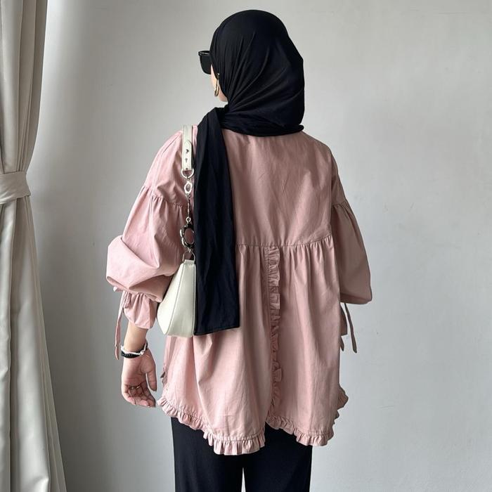 NIONY - YELLOWFACY || (KODE 627) BAJU WANITA PANJANG KATUN POPLIN RUFFLE BLOUSE SIZE M XL - ALMOND, SIZE XL