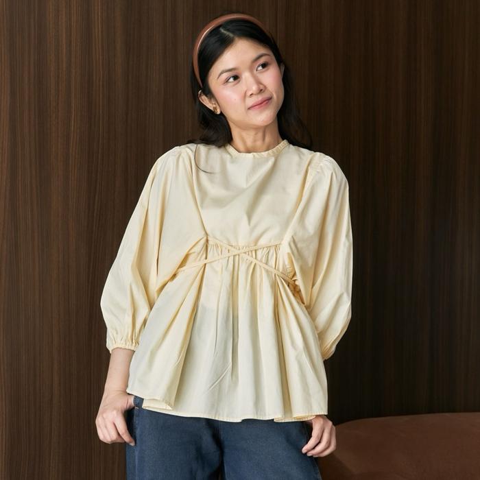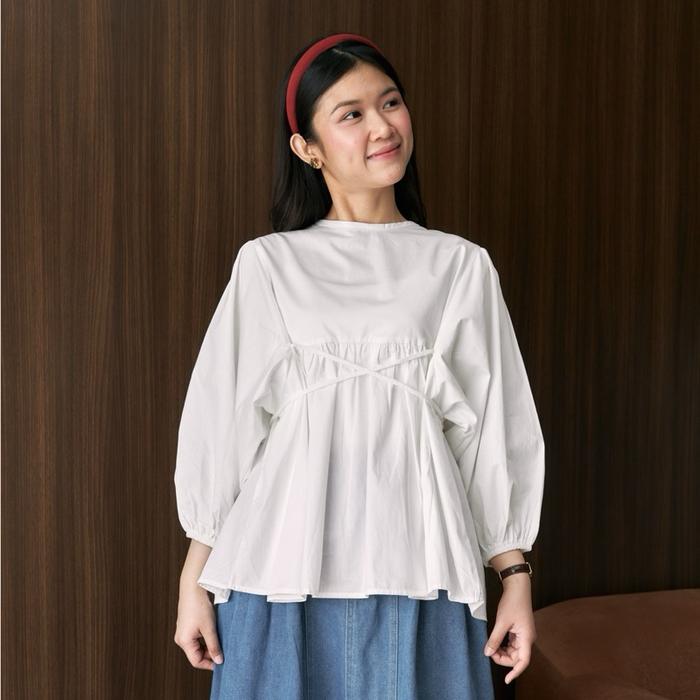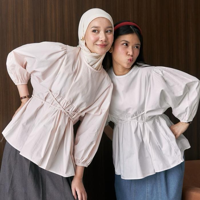 LUMI BALLOON BLOUSE - MYMINOLS | BLOUSE KOREAN | BLOUSE WANITA - FROST WHITE