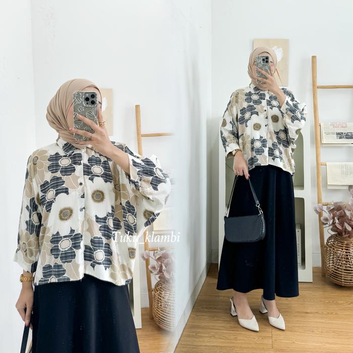 TUKUKLAMBI ATASAN WANITA BLOUSE RAYON BATWING OVERSIZE KEMEJA VIRAL HITAM CASUAL - DAUN