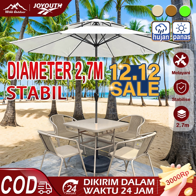 JOY Payung Tenda 2.7m Taman Hotel Patio Parasol payung pantai Bazar Outdoor Umbrella UV Perlindungan Kain