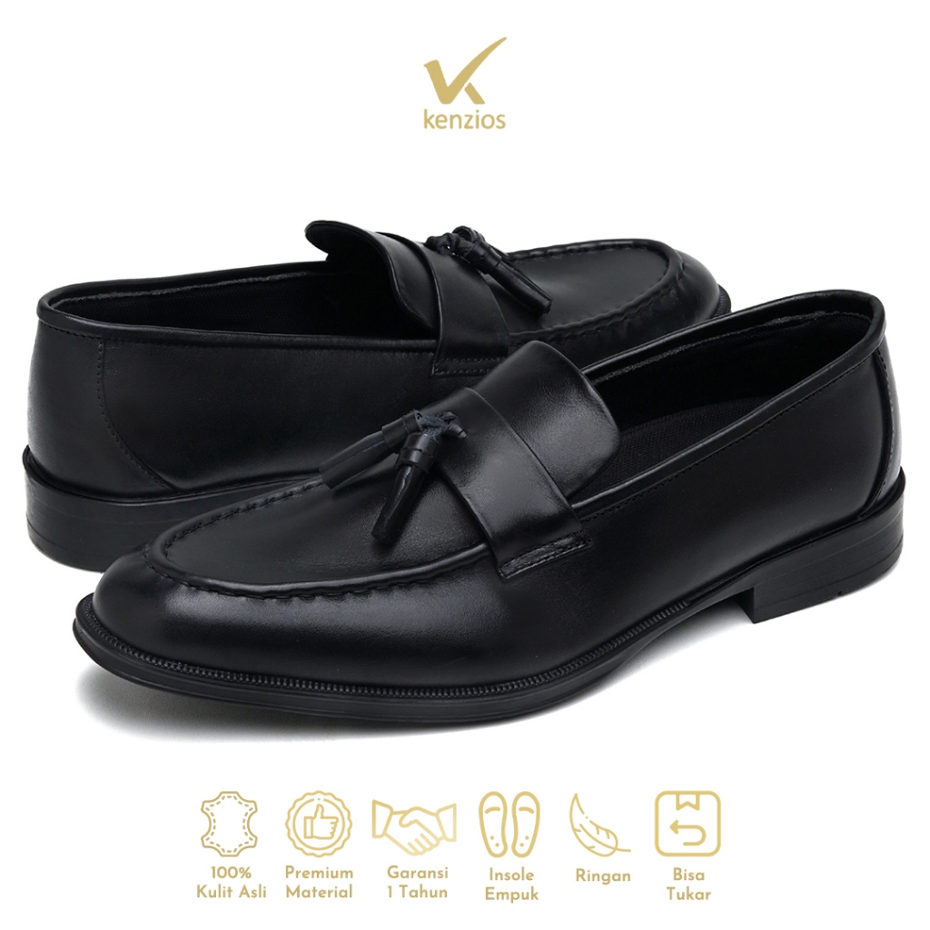Kenzios BASE Gama Black Sepatu Formal Pria Kulit Asli