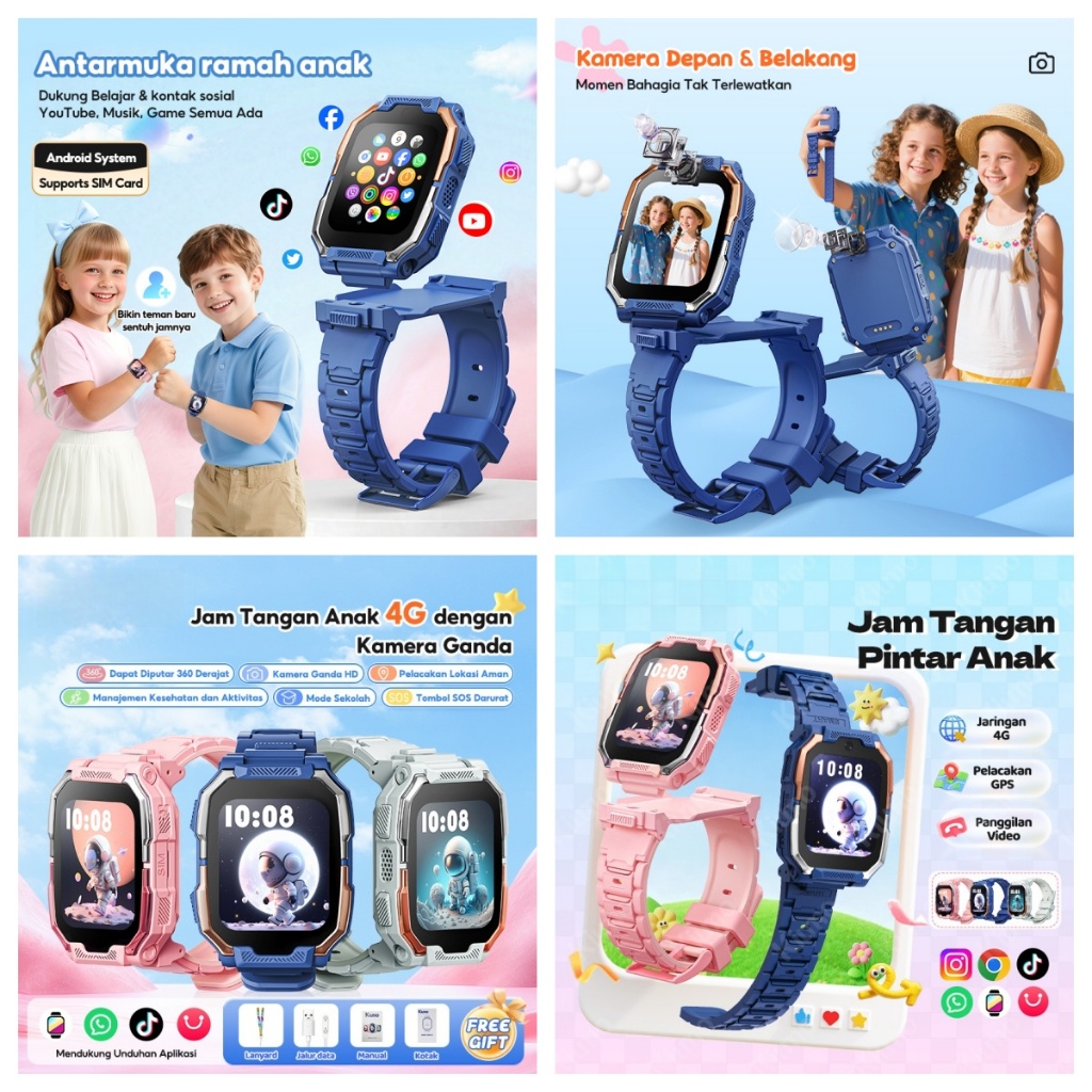 Kiumo Jam Tangan Smartwatch Anak T66 Jam Tangan Anti Air 4G GPS HD Camera IP67
