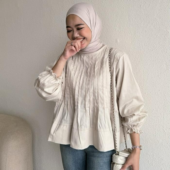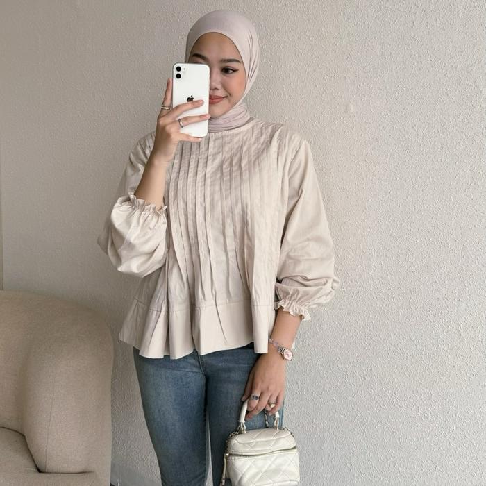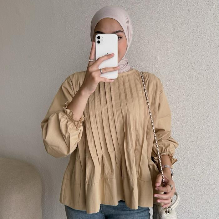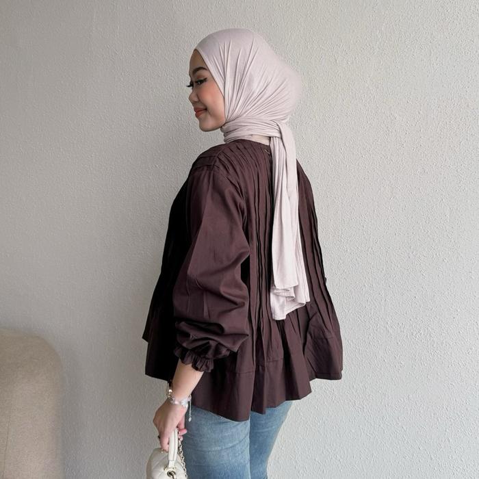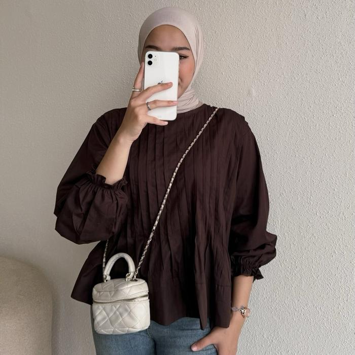 FLORAL ID- BLOUSE WANITA PEPLUM DANISA BLOUSE ATASAN WANITA POPLIN BUSUI KEMEJA PREMIUM LENGAN PANJANG - DANISA - DARK CHOCO