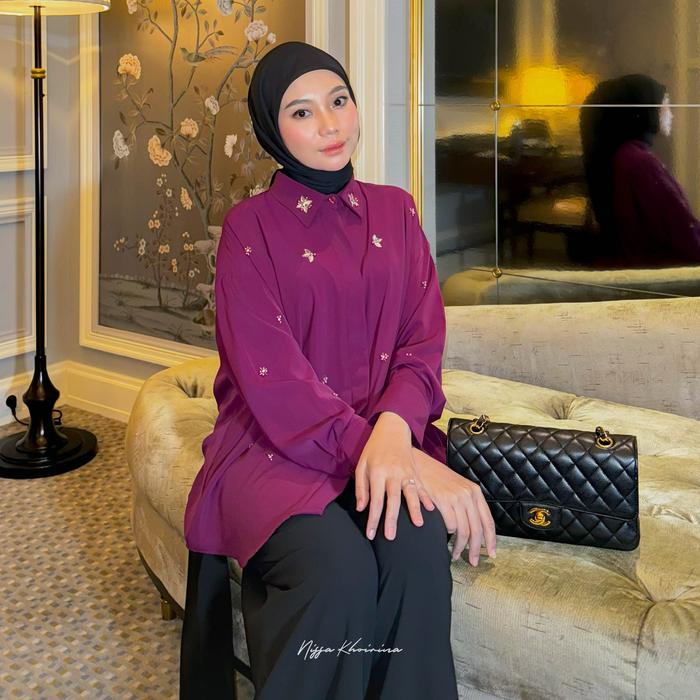 BYNISSA - HARVIA SHIRT - PAKAIAN WANITA - ATASAN - KEMEJA - BLOUSE - PAYET - SEAMLESS - ALLSIZE NYAMAN - BLACK