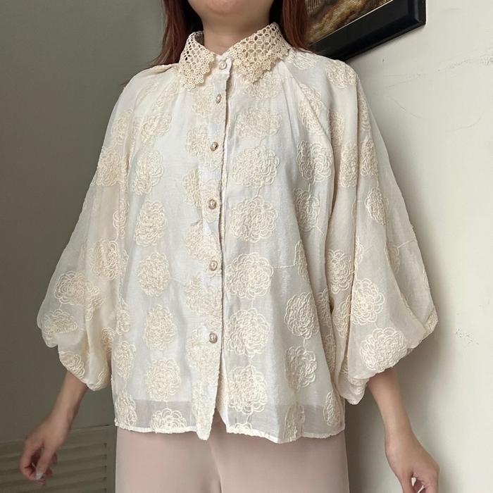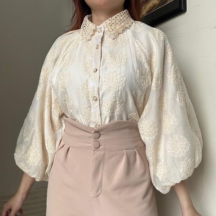 LILIANA BKK ATASAN BLOUSE KEMEJA WANITA KERJA ORGANDI BORDIR KOREAN STYLE BY BIEL THE LABEL - HITAM