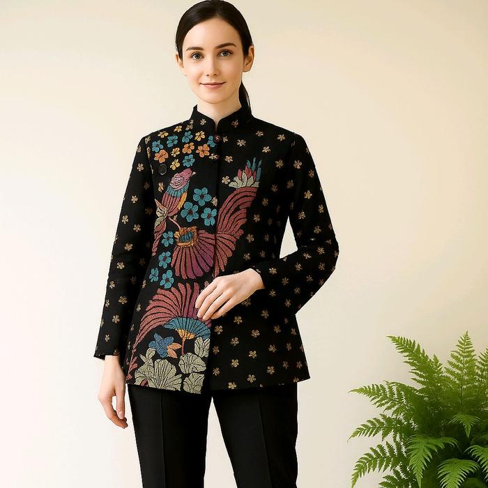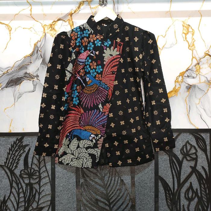 BATIK SOLO TRENDY - BLOUSE ALISSA MODEL JANGGAN BATIK KATUN KERJA LAPIS FURING TRIKOT KANTOR WANITA ATASAN FORMAL NYAMAN PANJANG - S