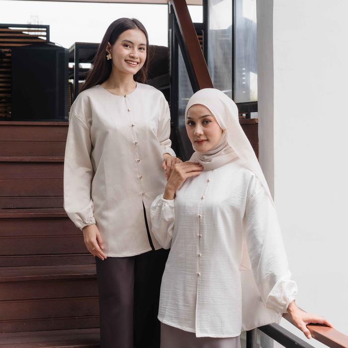 HOSOFSHOPAHOLIC - ILANA SHIRT - ATASAN WANITA - SOFT SUEDE BLOUSE - BROKEN WHITE, SIZE 1