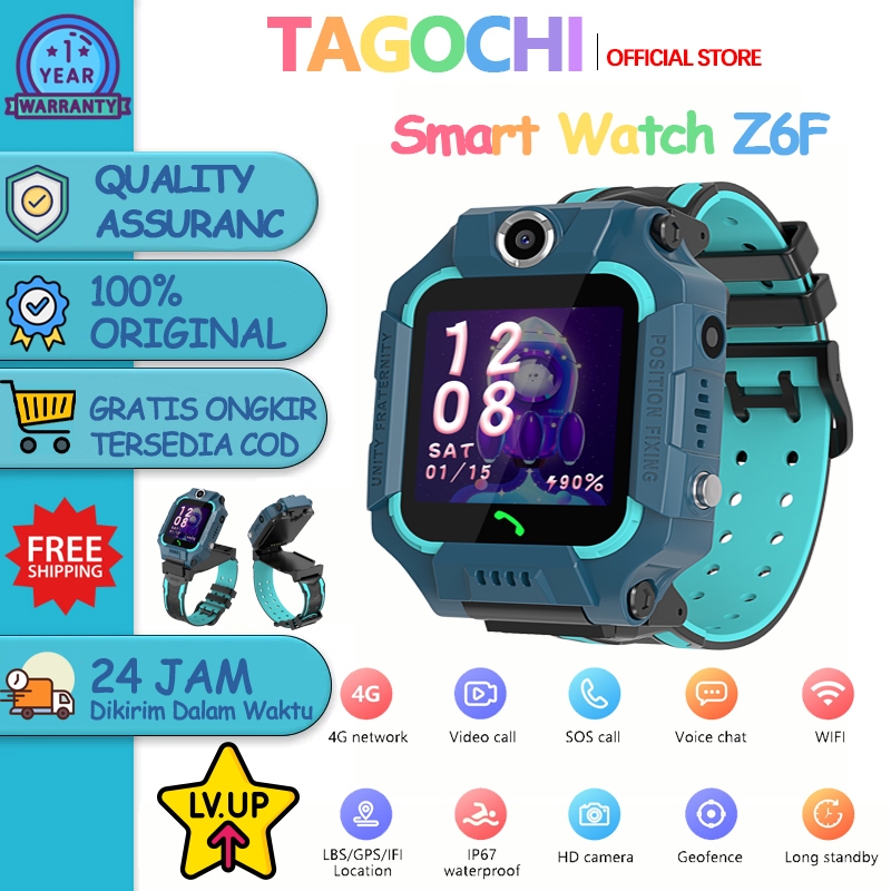 TAGOCHI Smart Watch Anak Z6F 4G dengan Fitur Video Call & Dual Kamera 360° - Bisa Voice Call, GPS, dan Tahan Air, Jam Tangan Cerdas untuk Pantau Si Kecil.