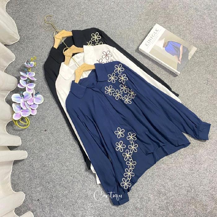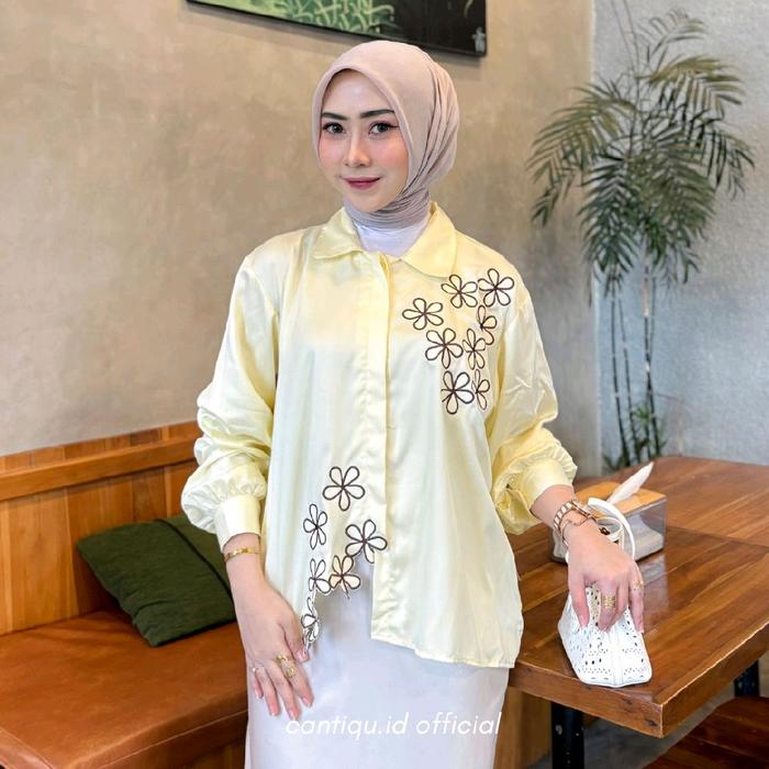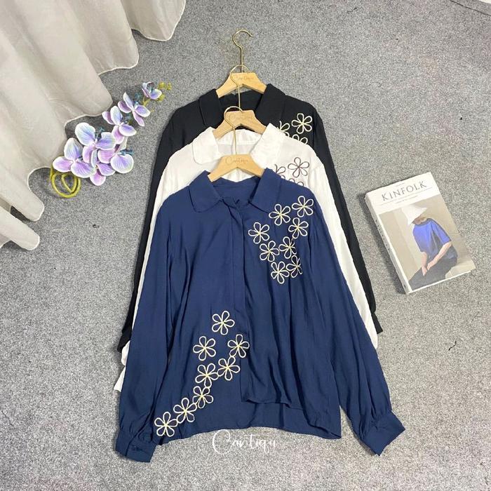 KYREN BLOUSE BORDIR BUNGA LENGAN PANJANG BAHAN RAYON TWILL - KYREN SOFTPINK NEW