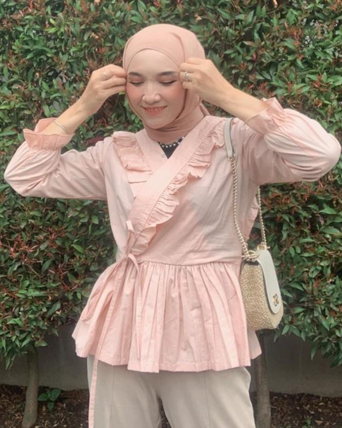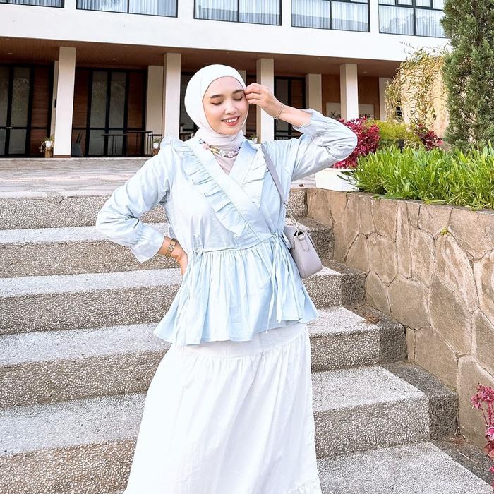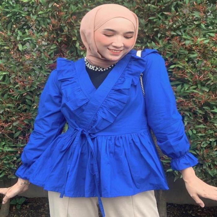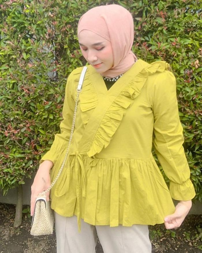 LADYFEMMES ZELDA BLOUSE FASHION ATASAN WANITA MUSLIM - SOFT YELLOW, ALL SIZE