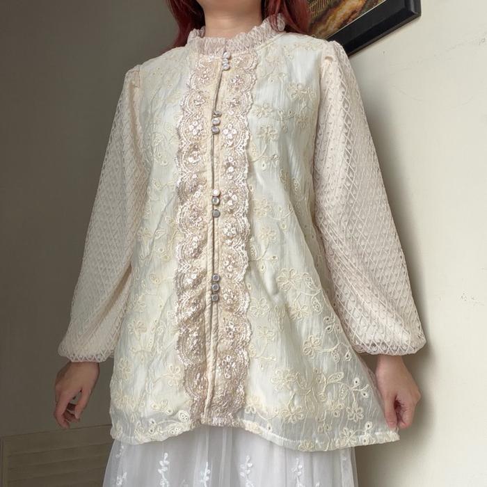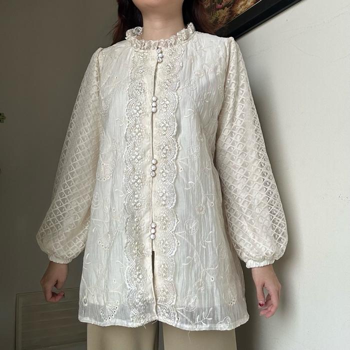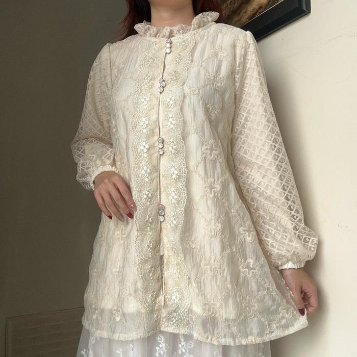 AZENA BKK ATASAN BLOUSE WANITA VIRAL KEMEJA CANTIK KERJA KOREAN STYLE RENDA TENSEL BROKAT BY BIEL THE LABEL - BIRU BUNGA