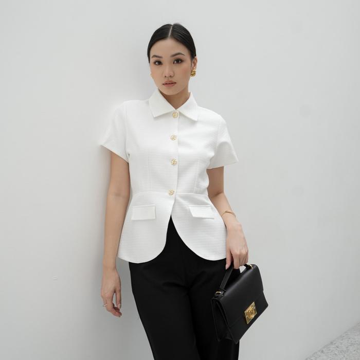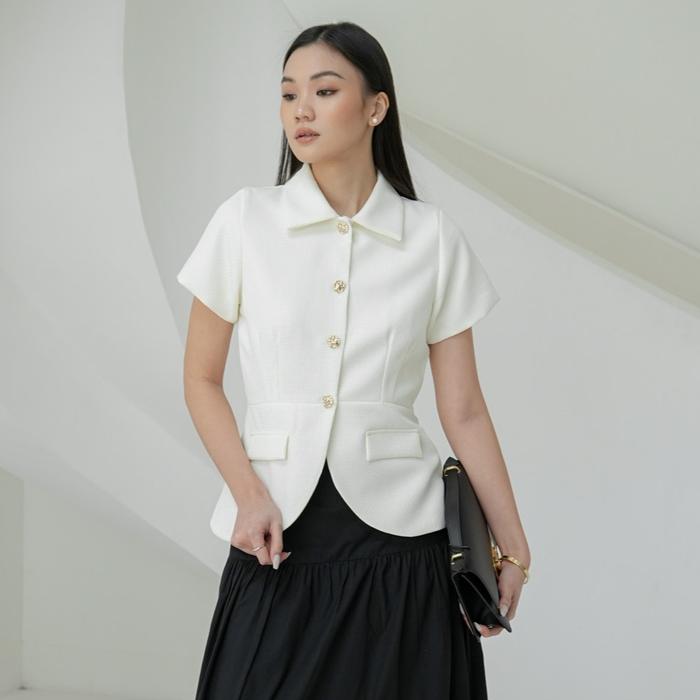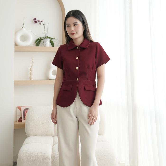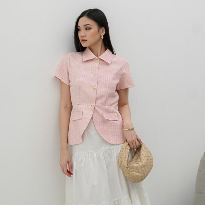 [TAVIA] GIA TWEED / KEMEJA WANITA / BLOUSE WANITA / ATASAN WANITA / CASUAL - PINK, S