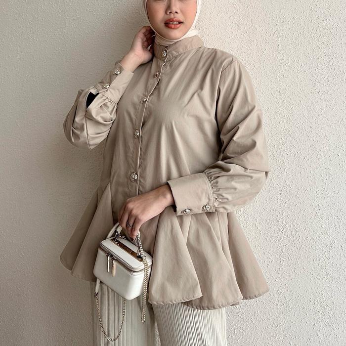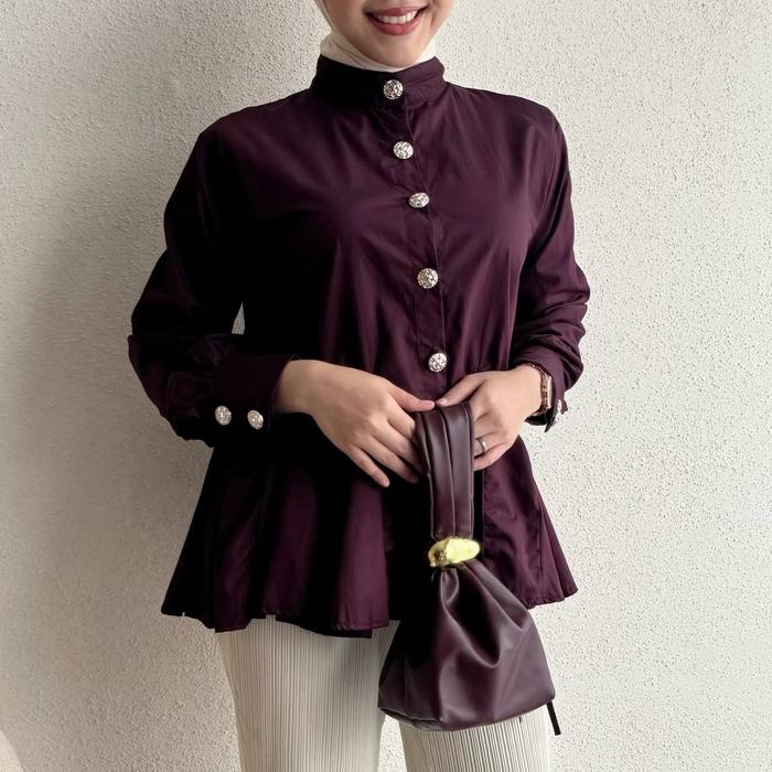 FLORAL ID - BLOUSE POPLIN SONYA KANCING LENGAN PANJANG ATASAN WANITA BASIC CASUAL - SONYA - BROWN