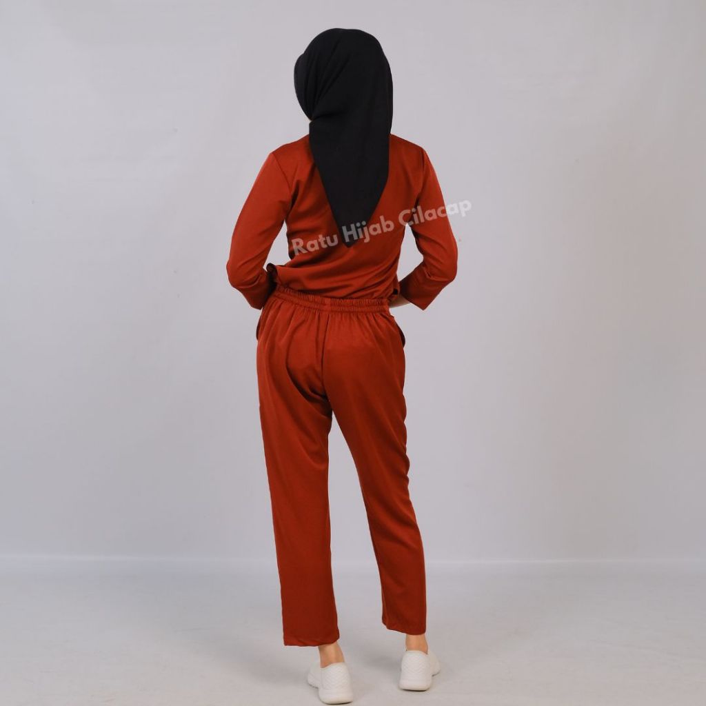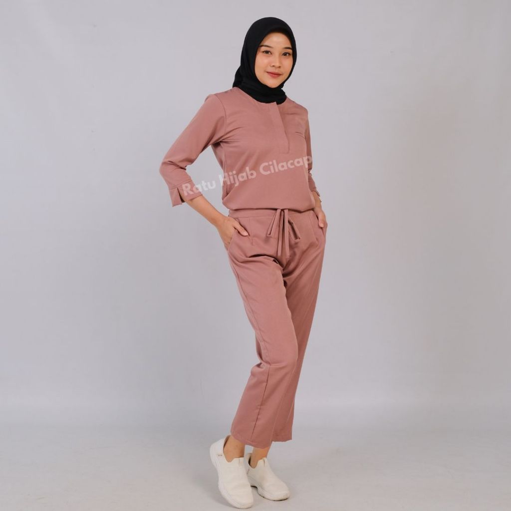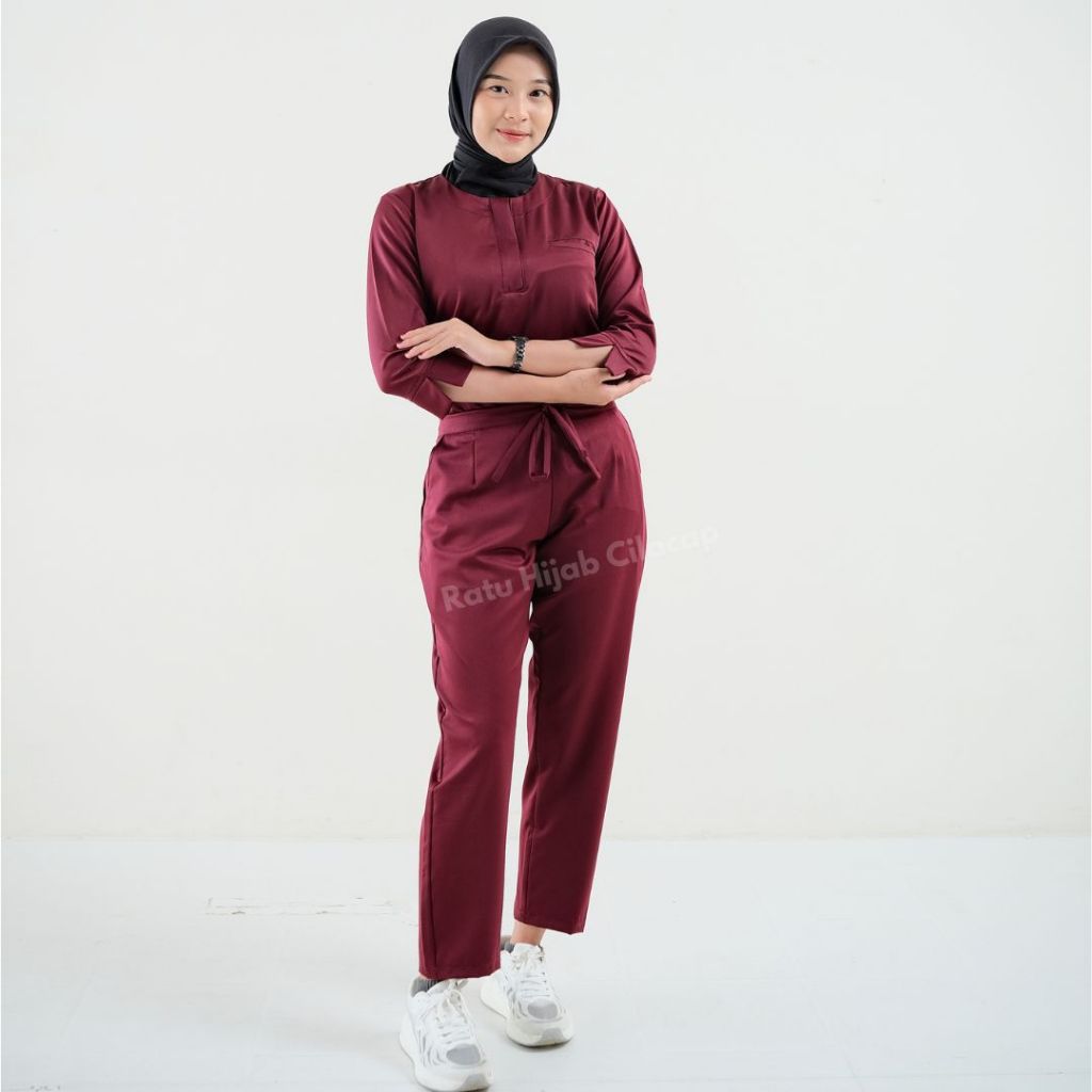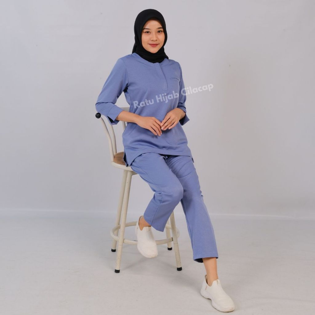 Baju Ok Resleting Stretch Lengan 7/8 Slim Fit Nakes Perawat One Set Seragam Kerja