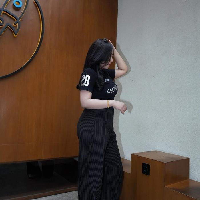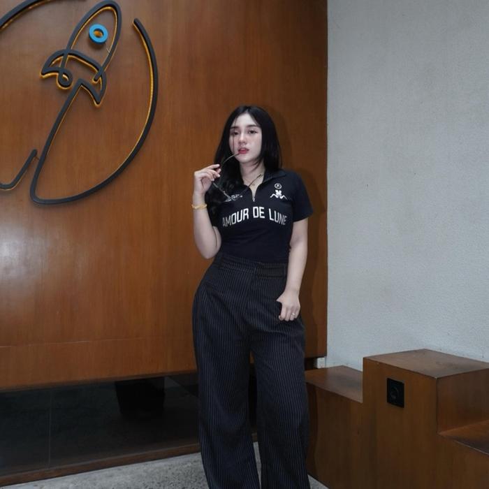 AFNTY.ID | POLO CROPTOP ( WANITA ) AMOUR DE LUNE | CROPTEE GIRL | ZIPPER | LUXURY | HIGH QUALITY - HITAM, S