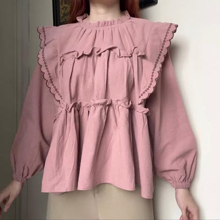 YEWON BLOUSE ATASAN WANITA KOREAN STYLE BY BIEL THE LABEL LINEN VARIASI - DUSTY PINK