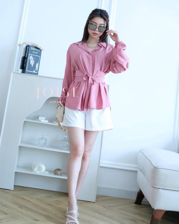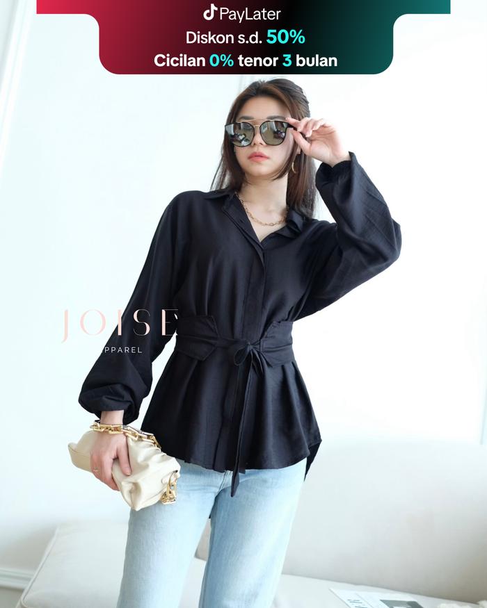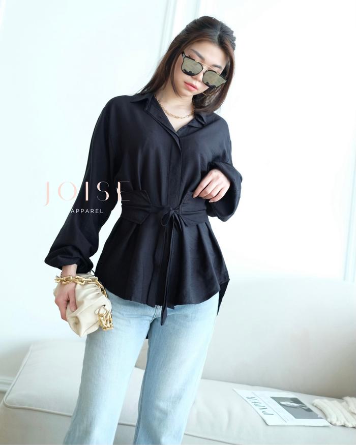 JOISE - CALIA SHIRT BLOUSE + BELT / BLOUSE SHIRT KEMEJA TALI PINGGANG / BAJU BLOUSE KANCING WANITA ATASAN PANJANG CASUAL - BLACK