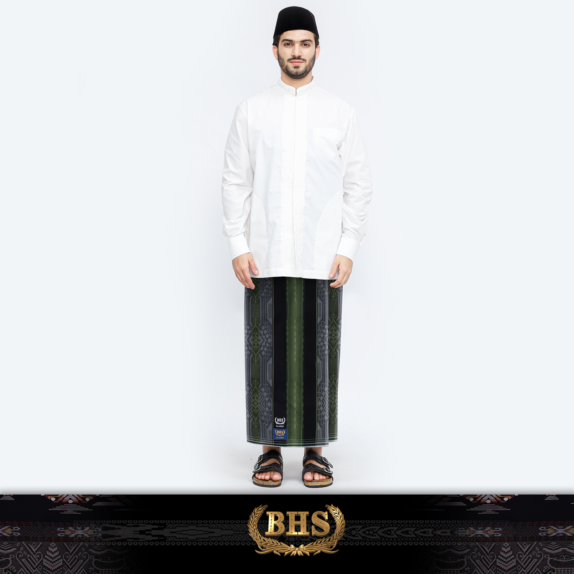 Sarung BHS Classic Gold Motif C44 DGB SJ Hitam Hijau 03