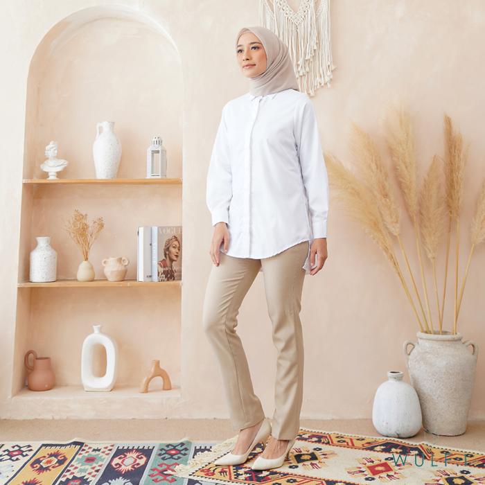 WULFI ATASAN KEMEJA BIGGIE WHITE / KEMEJA LENGAN PANJANG PUTIH / KEMEJA KANTOR / BLOUSE WANITA / KEMEJA JUMBO KANCING KATUN OVERSIZE KERAH BAJU MUSLIM BASIC KERJA FORMAL WUDHU - NO 1 UKURAN XS-S