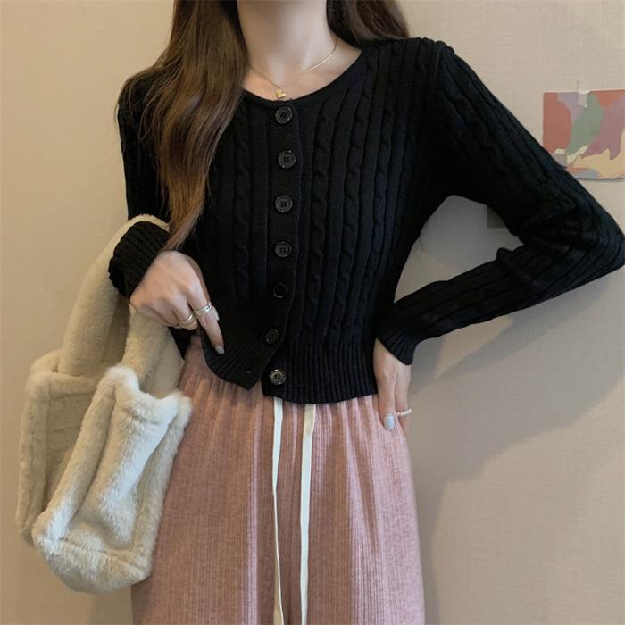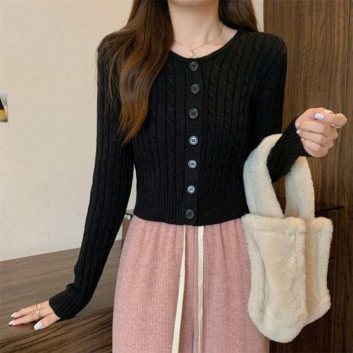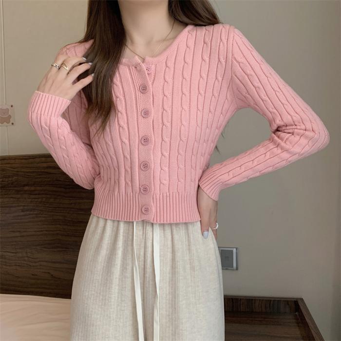 CARDIGAN RAJUTAN LENGAN PANJANG WARNA SOLID DESAIN TWIST WANITA GAYA KOREA KNITWEAR ATASAN BAJU CROP CEWEK OUTER KARDIGAN D3W4SA CASUAL - PINK