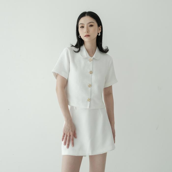 GIA TWEED -- OCHA WEAR | ATASAN KEMEJA WANITA | CROP TWEED MURAH PREMIUM BERKUALITAS - WHITE, M
