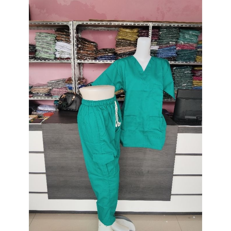 Baju + Celana + Topi Baju Oka Lengan Pendek Stelan Celana Cargo Varian Pria-Wanita