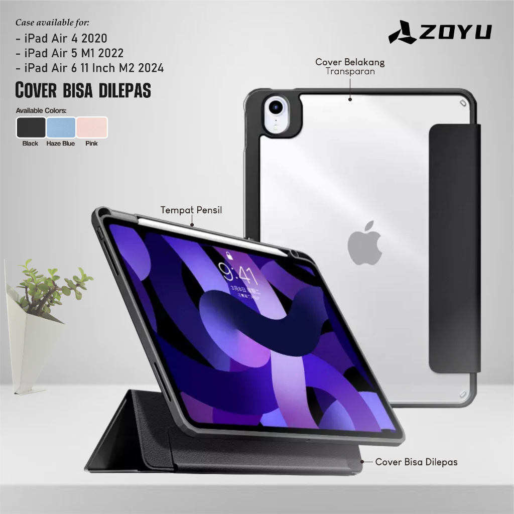 Case iPad Air 6 11 inch M2 2024 I iPad Air 5 M1 I iPad Air 4 Detachable Casing Cover Hitam Biru Pink