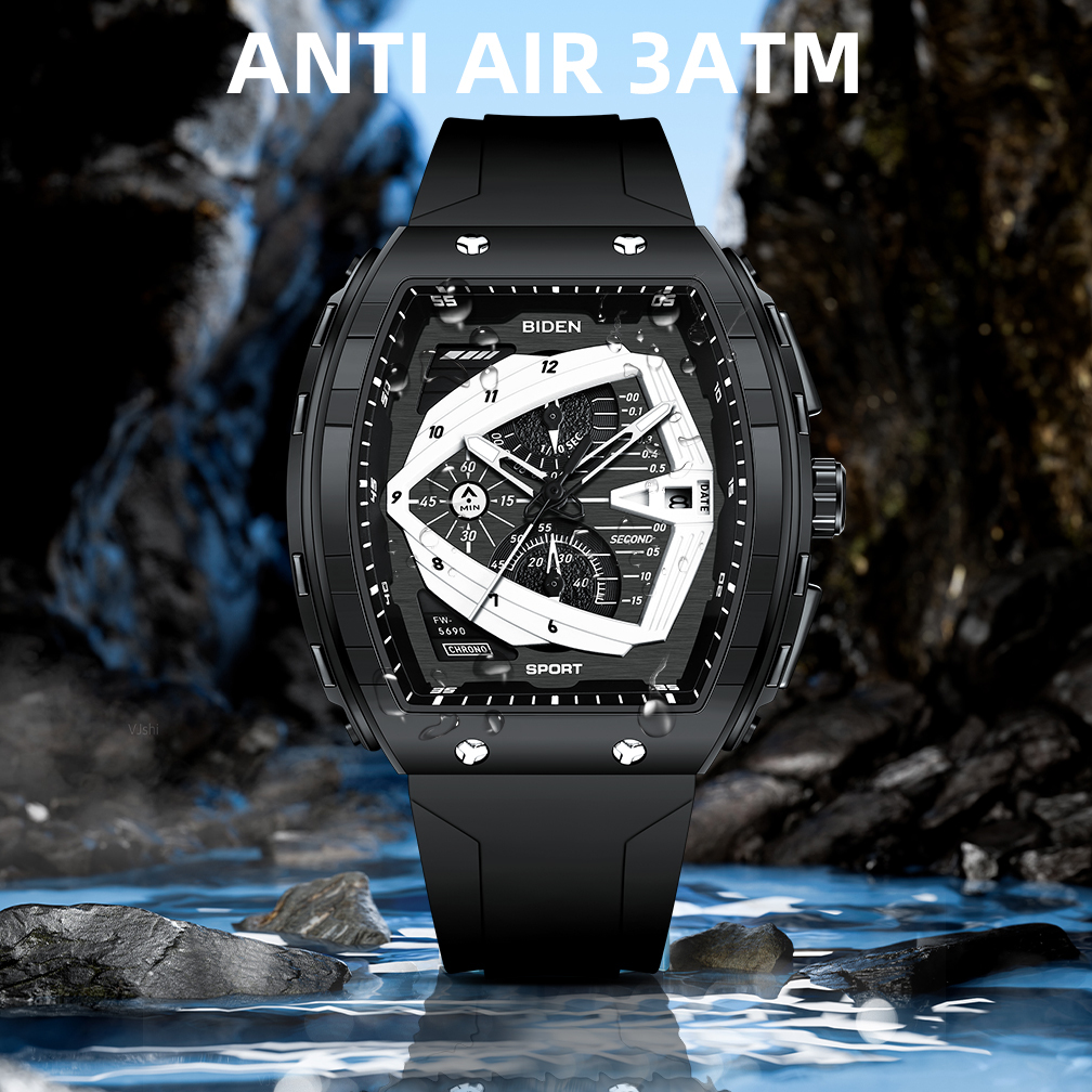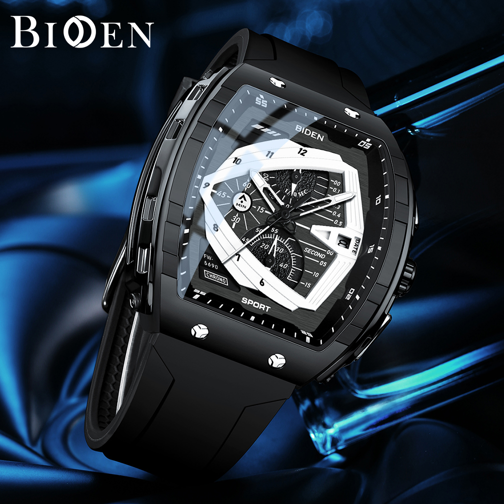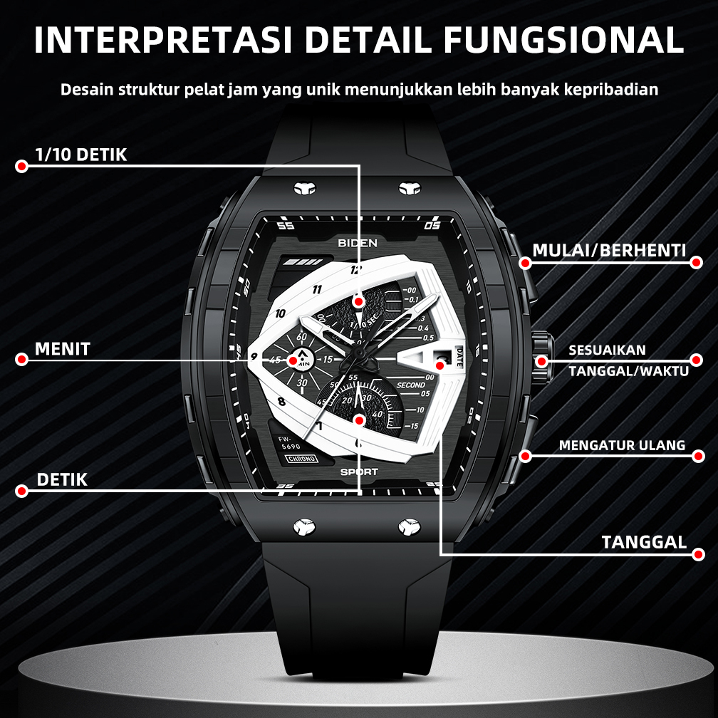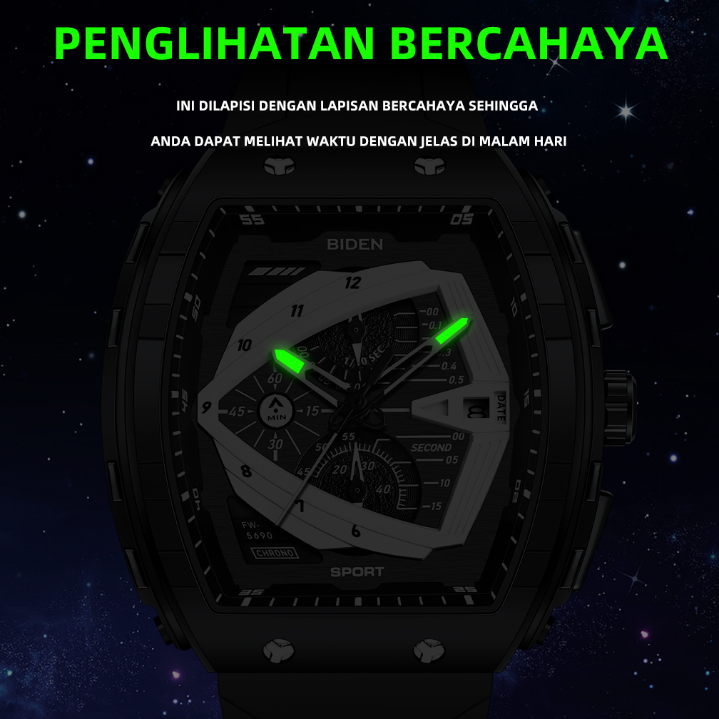 BIDEN Jam Tangan Pria Anti Air Original Olahraga Pria Kalendar Bercahaya Tali Silikon Jam Tangan Cowok