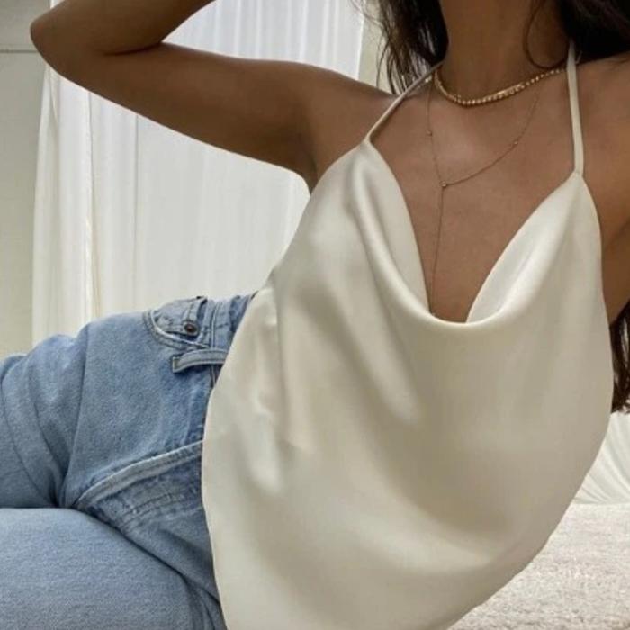 OVINA.IDN TALLULAH CROP DRAPE ATASAN WANITA BACKLESS PANTAI - PUTIH, ALL SIZE
