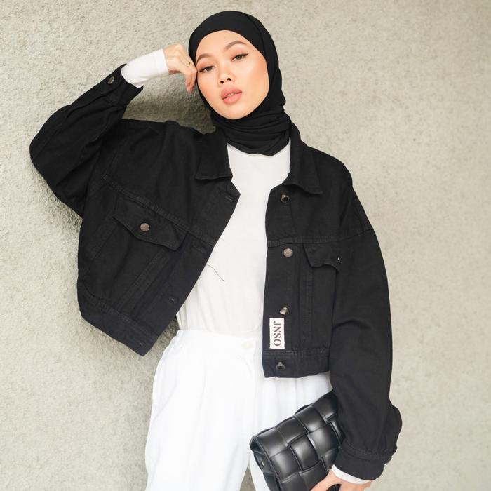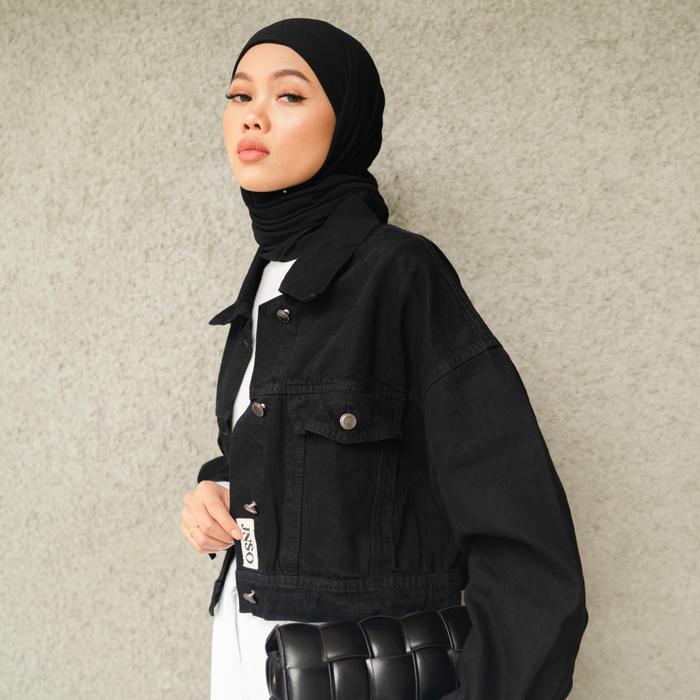 JINISO JAKET CROP JEANS OVERSIZE URBAN BLACK JAKET CEWEK - ALL SIZE