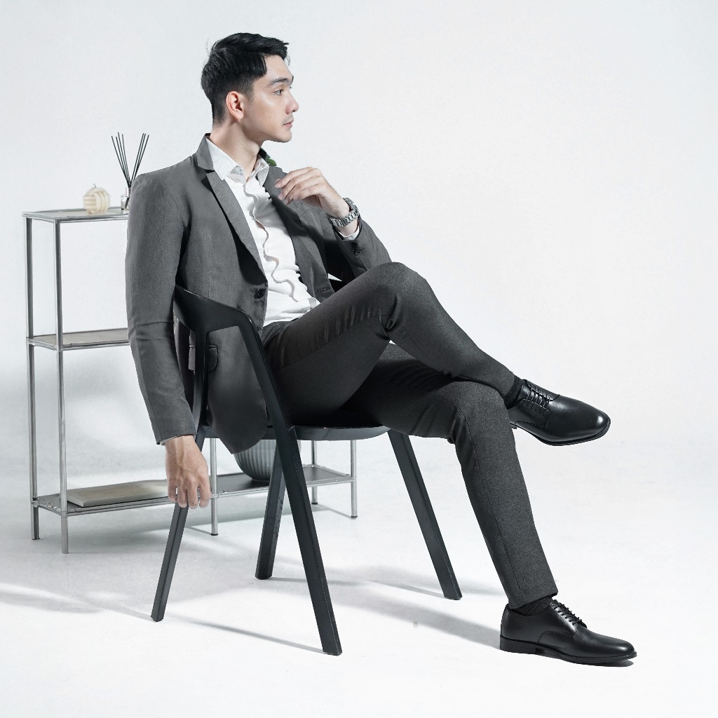 Kenzios BASE Derby Black Sepatu Kerja Formal Pria Kulit Asli