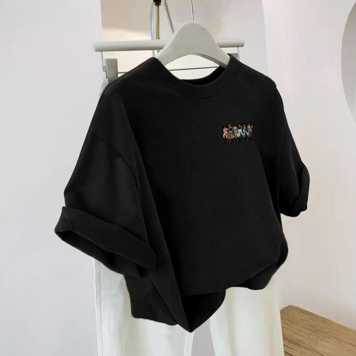 KAOS WANITA DESAIN ASLI KATUN 100 PERSEN LENGAN PENDEK LONGGAR - PUTIH, S