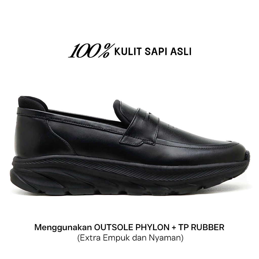 KENZIOS SCENE 1 FULL BLACK - Sepatu Formal Kulit Asli Pria Loafer Casual Sneakers Slip on Size 39-46