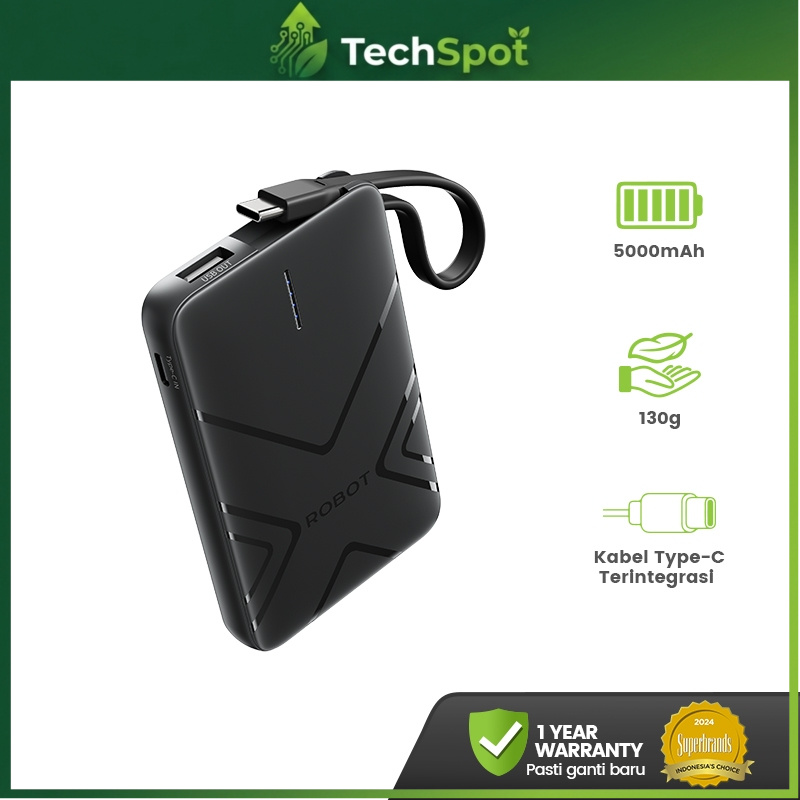 [Star] ROBOT Powerbank Mini 5000mAh Real Capacity Fast Charging 18W With Cable Type C Power Bank Portable RT07 Ori