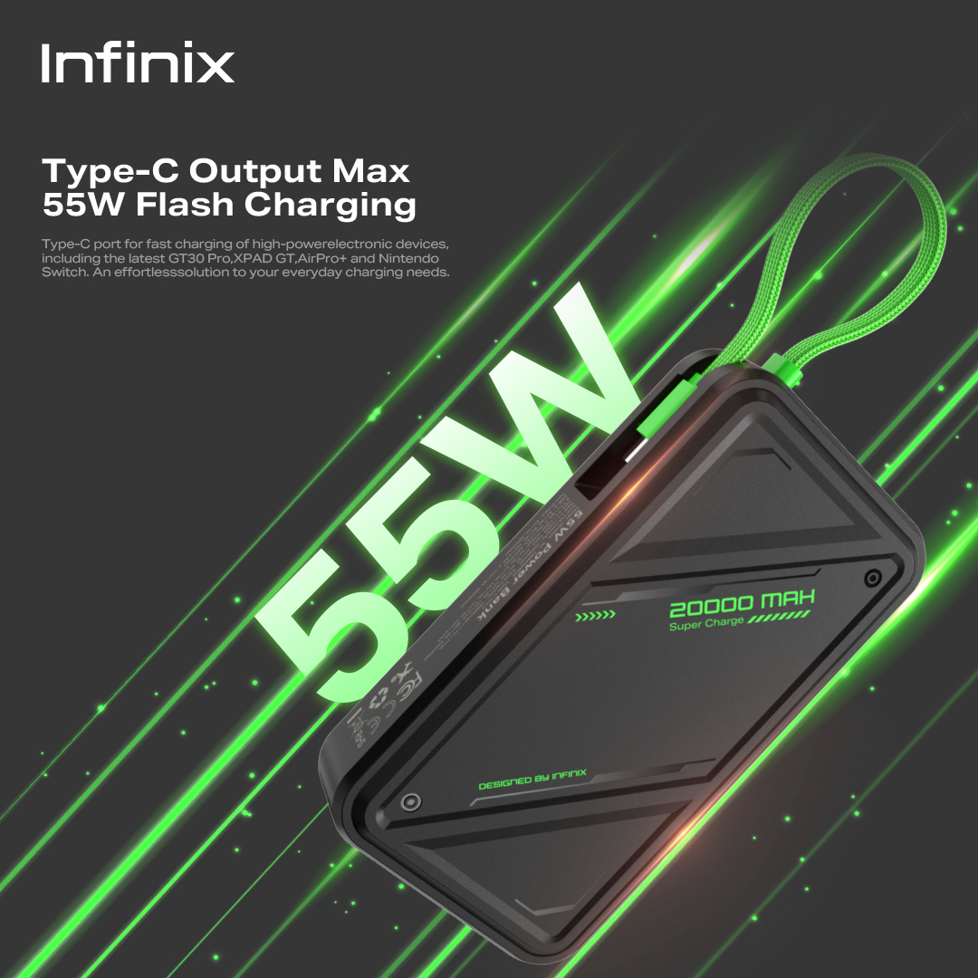 [Star] Infinix GTPower - XP 20 GT - 20000mAh - 55W Max Charging - Upgraded AI-Powered Battery Management - Type C