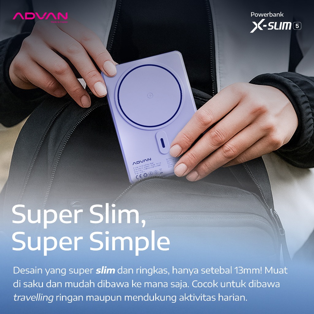 [Star] ADVAN Wireless Powerbank Xslim5 5000mAh | MagSafe Compatiblec Charging 15W | Fast Charging 20W | Type-C