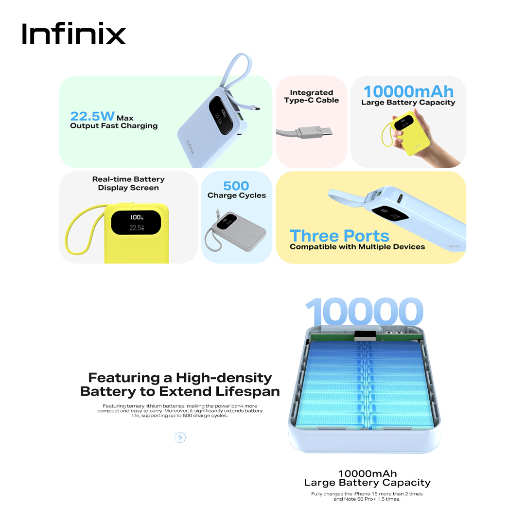 [Star] Infinix XPower 10 Pro - Powerbank XP10 Pro - 10000mAh - 500 Charge Cycles - Compatible with Multiple Devices