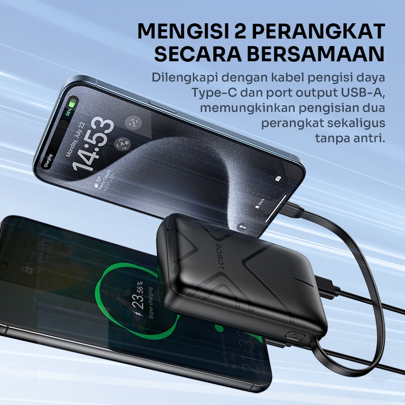 [Star] ROBOT Smart Powerbank Mini 37Wh 10000mAh With Cable USB to Type C Power Bank Fast Charging RT17 Original