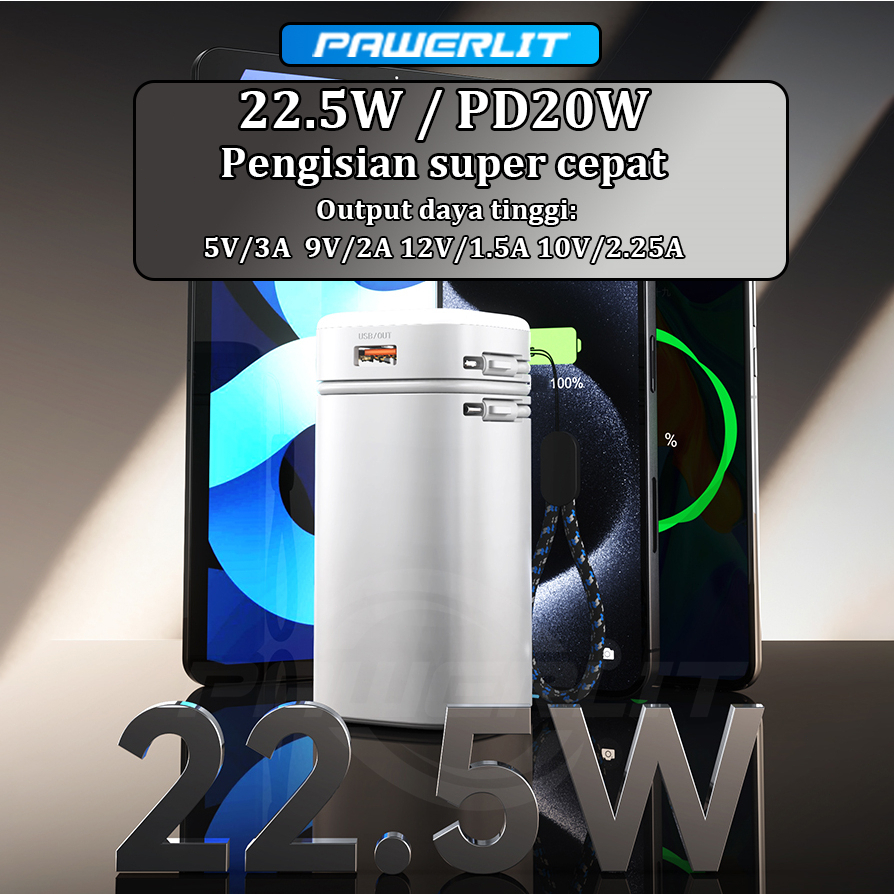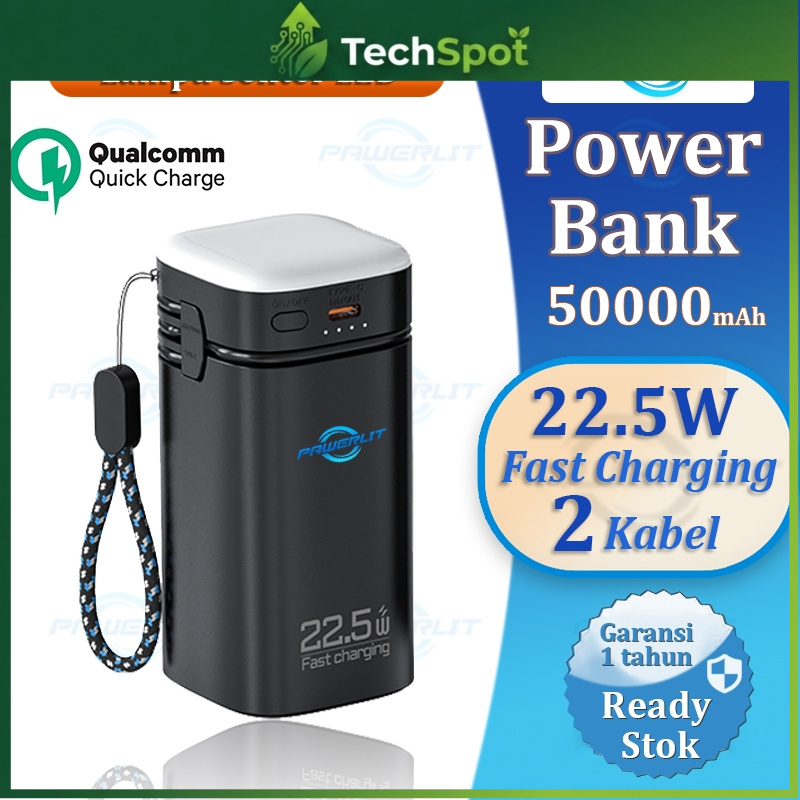 [Star] PAWERLIT Powerbank 50000mah Fast Charging Power Bank Type-C Kabel 22.5W PD20W Lampu Emergency Senter LED