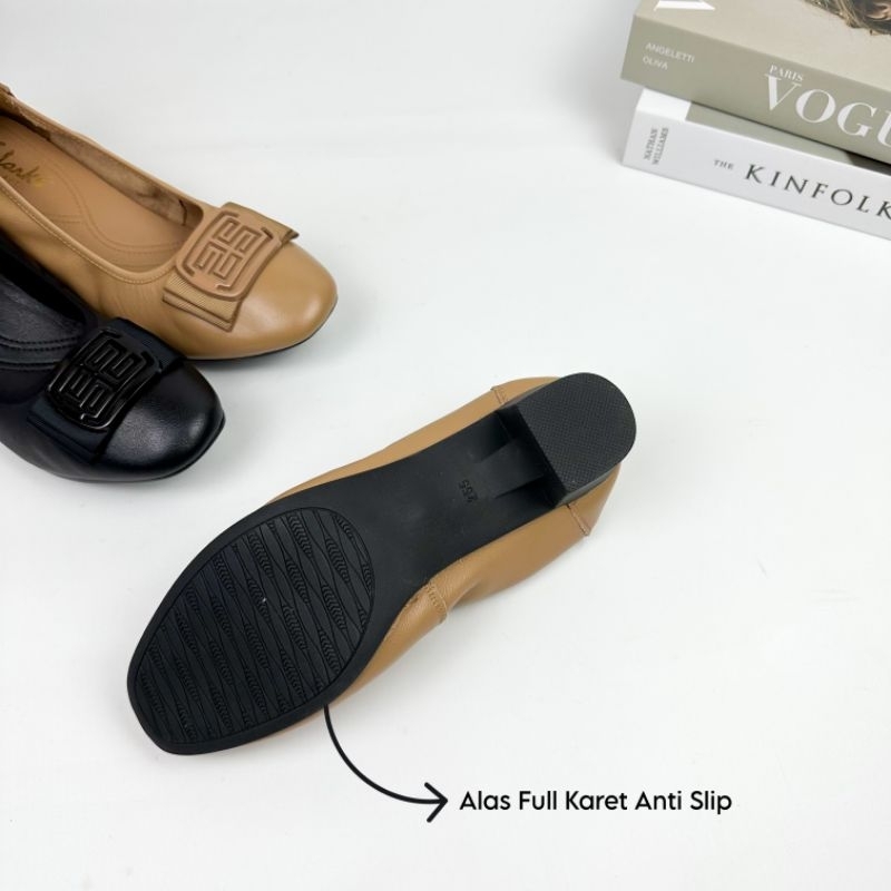 Clarks Sepatu Kulit Wanita Heels 4 cm 100 % Kulit Asli AH 885