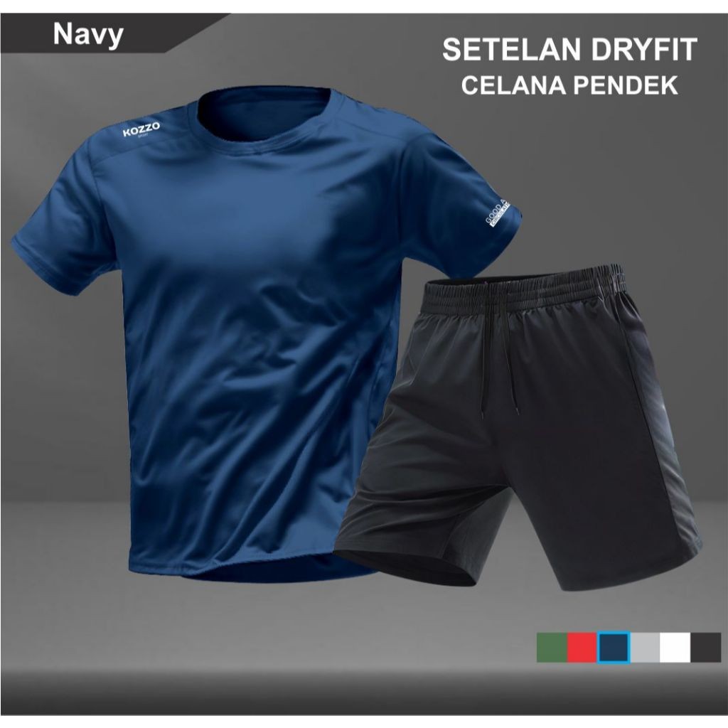 Baju Olahraga Setelan Pria Kozzo Set Kaos Dry Fit dan Celana Pendek Lari Nyaman Tanpa Saku
