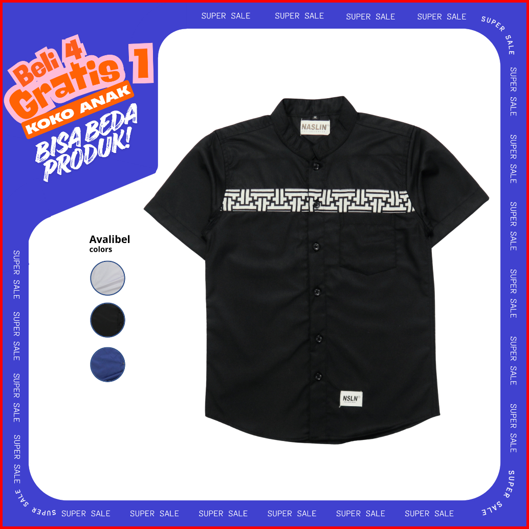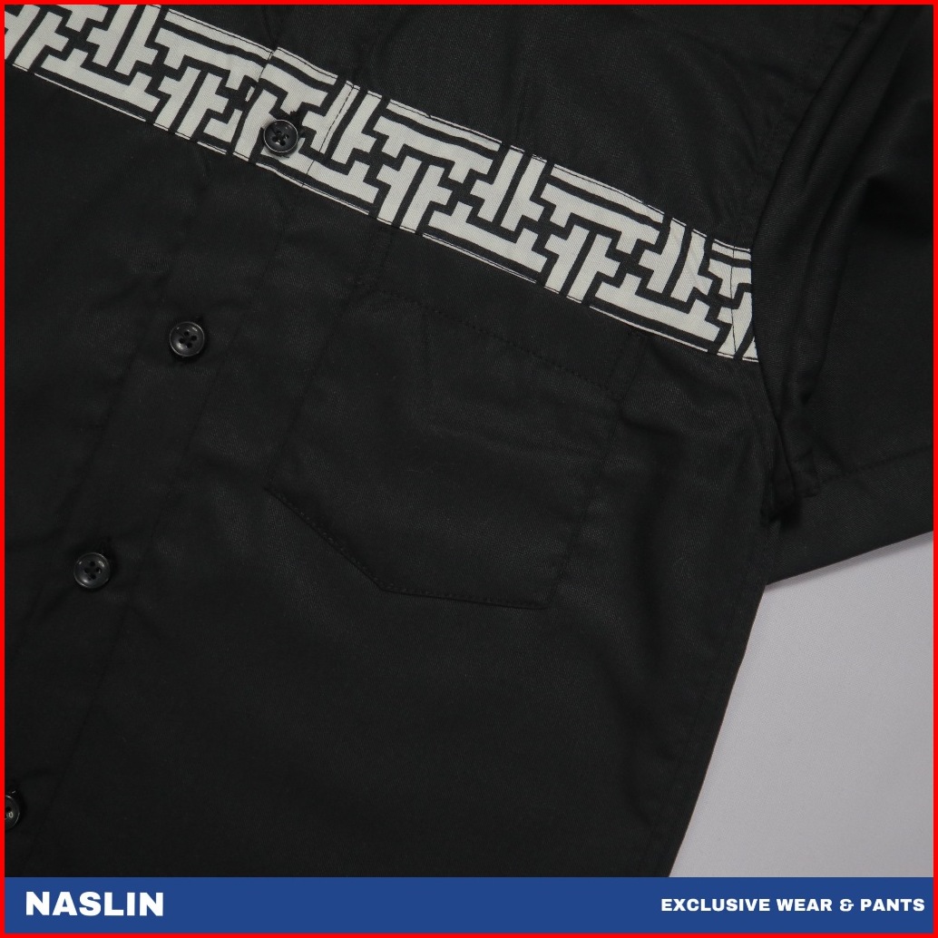 Naslin Baju Koko Anak Laki - Laki Lengan Pendek Usia 4 - 15 Tahun Hitam Motif Falcon Bahan Toyobo